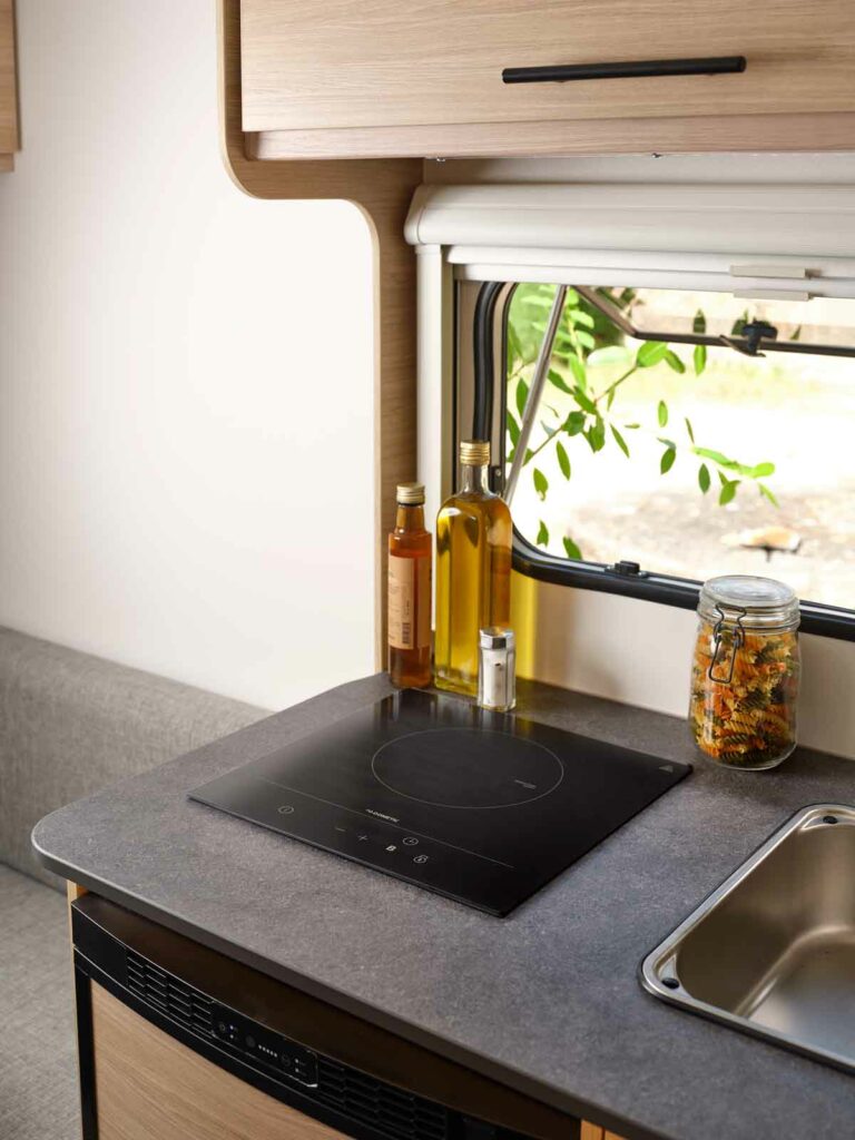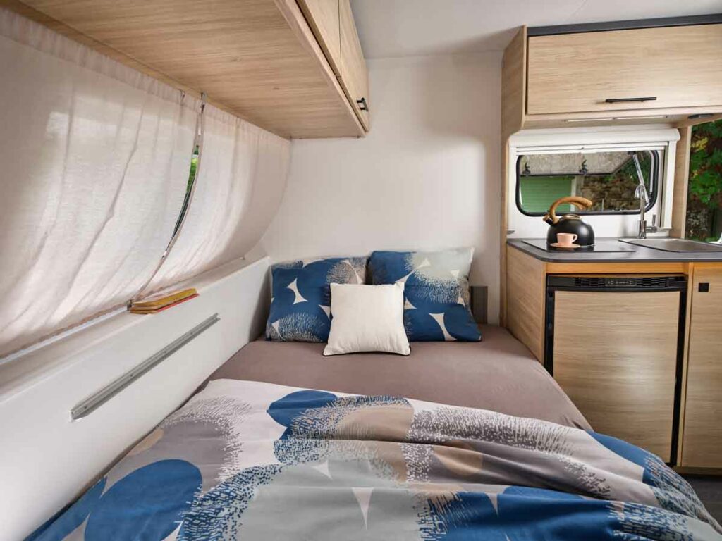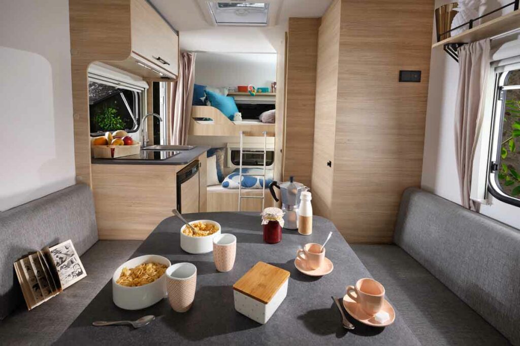 Nieuwe gezinscaravan met 4 slaapplaatsen en een MTM van slechts 750 kg, met 100% elektrische uitrusting. Bovendien biedt het exclusief – en standaard – een geheel nieuw connectiviteitsconcept.