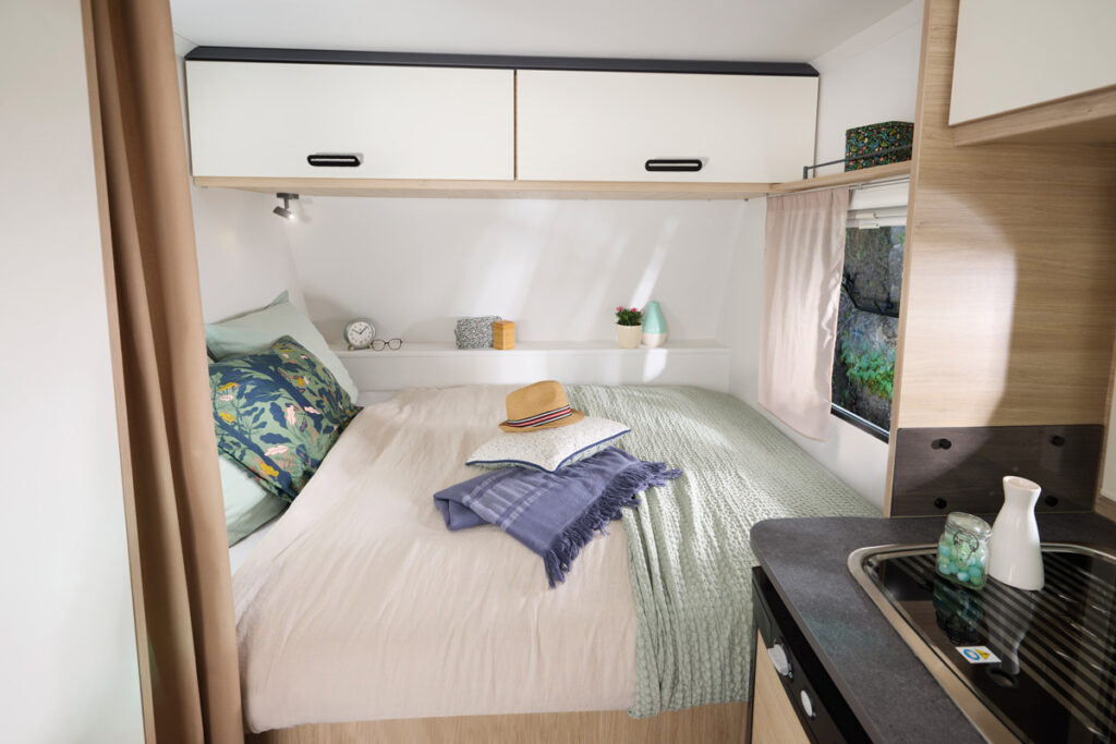 Met zijn comfortabele stapelbedden achterin, een groot vast bed voorin en een ombouwbare dinette, is de 490PE ideaal voor gezinnen. Functionele keuken, goed ingerichte badkamer, XL koelkast van 150L. . . alles is aanwezig om met meerdere personen te reizen, zonder in te boeten op comfort of autonomie.